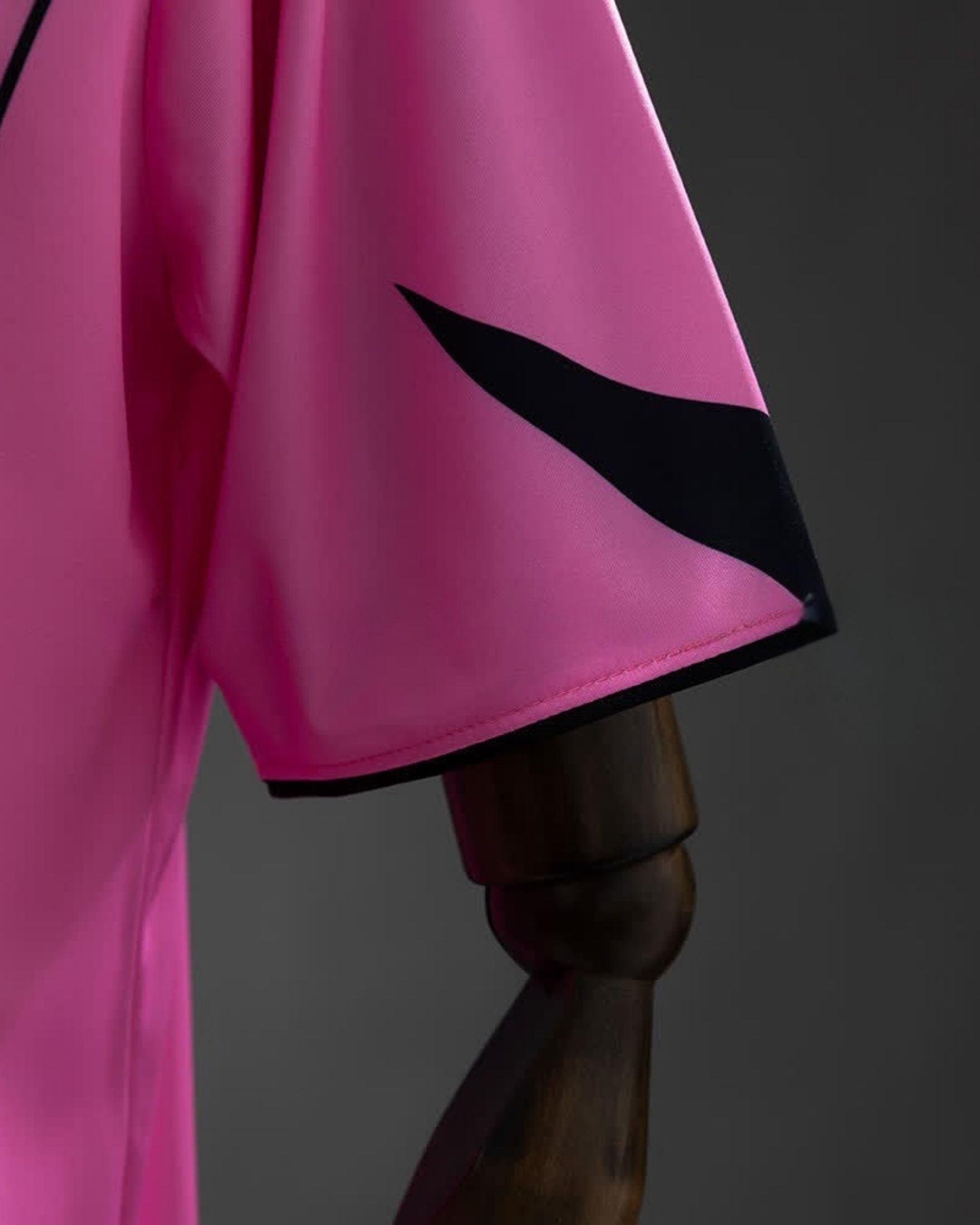 O modelo apresenta cor base rosa, com detalhes em preto aplicados na gola, mangas e linhas de contorno do corpo, criando um contraste forte e moderno, característico da estética Total 90.