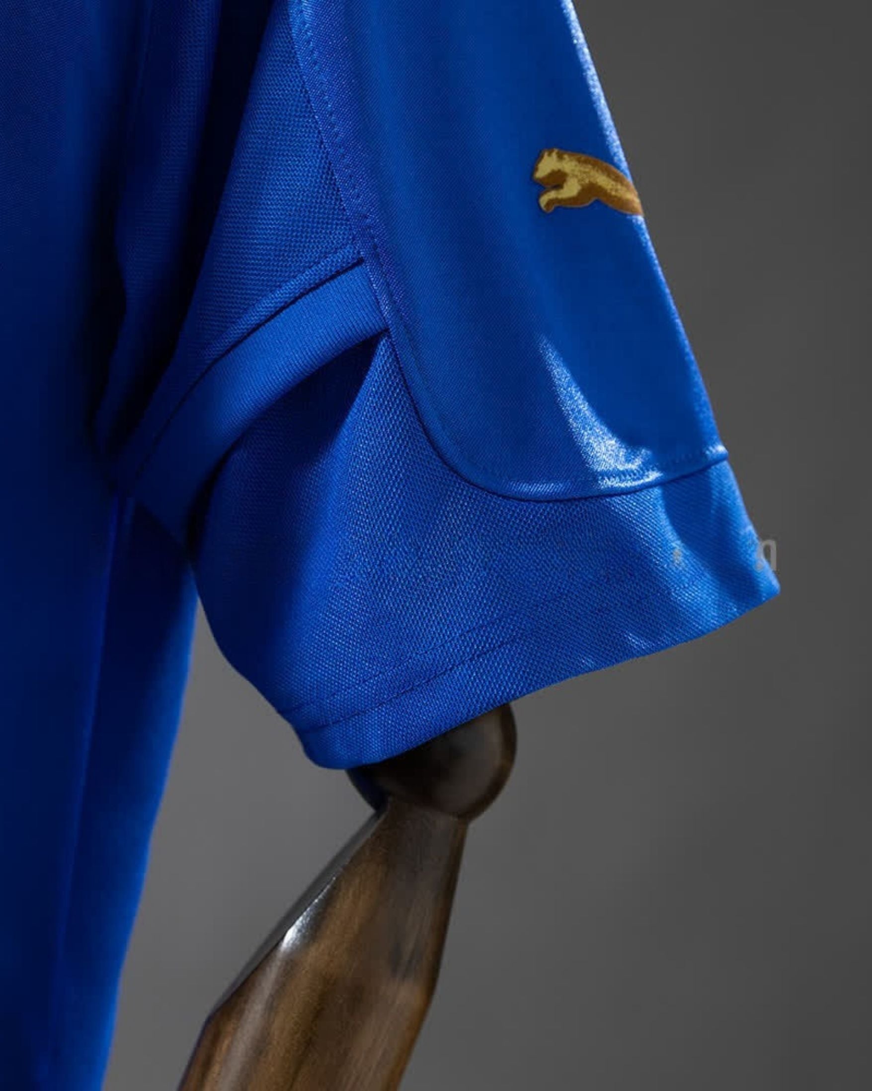 Design: A camisa apresenta o clássico "Azzurro" (azul real) com um acabamento levemente acetinado que remete aos uniformes do início dos anos 2000.